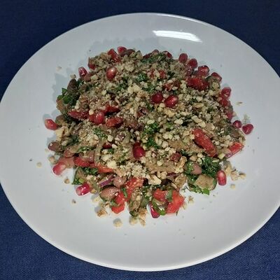 Фарш говяжий, лук репчатый, болгарский перец, помидоры, петрушка, кинза, халапеньо