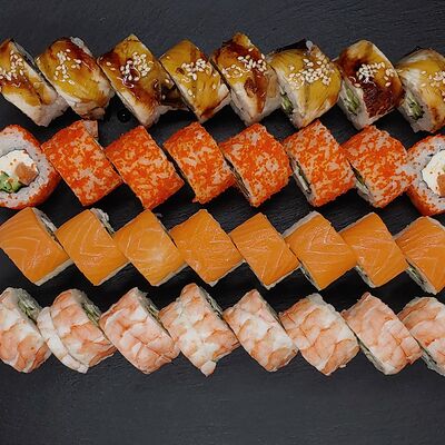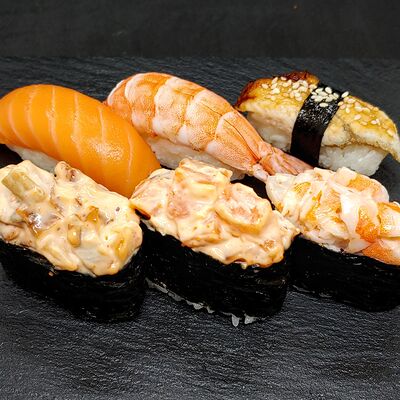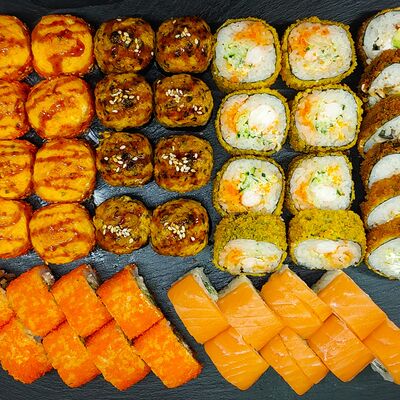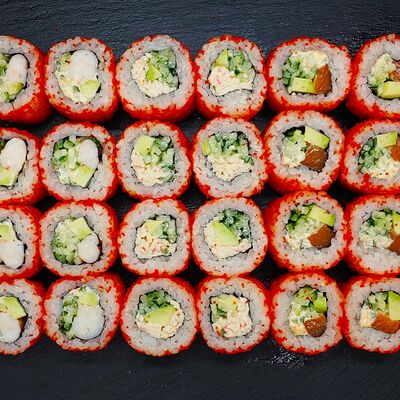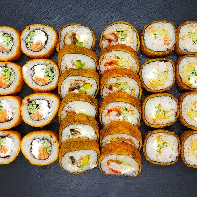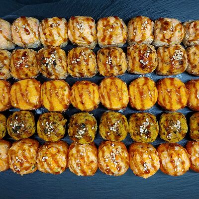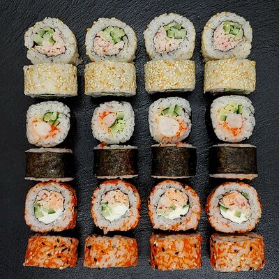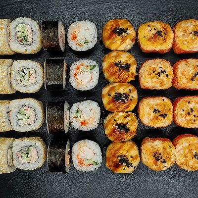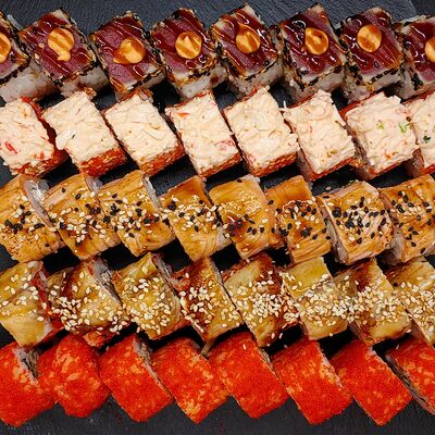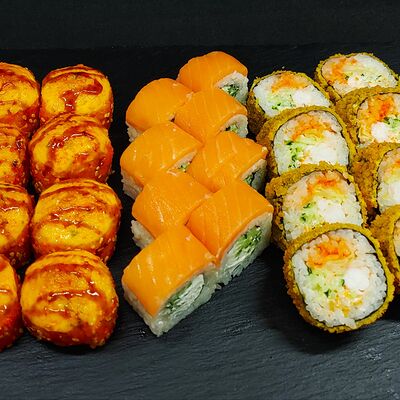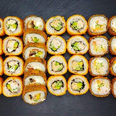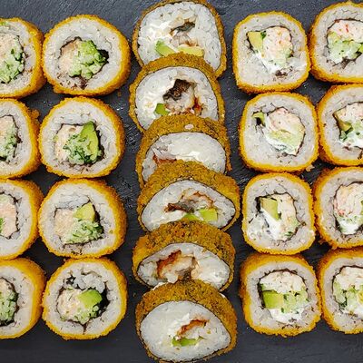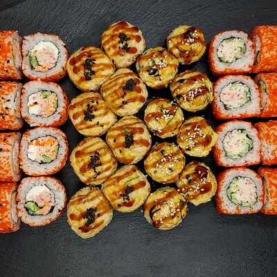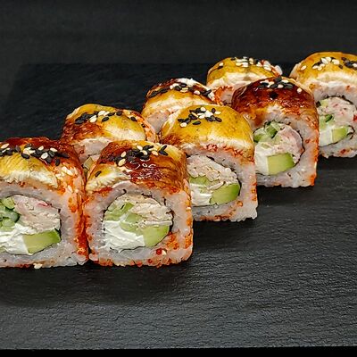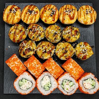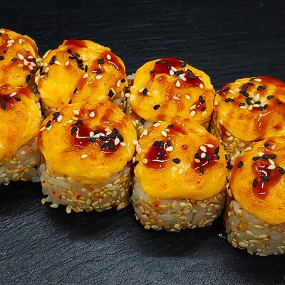 Калифорния в кунжуте, Динамит маки, Эби хот, Запеченные с креветкой