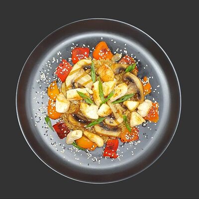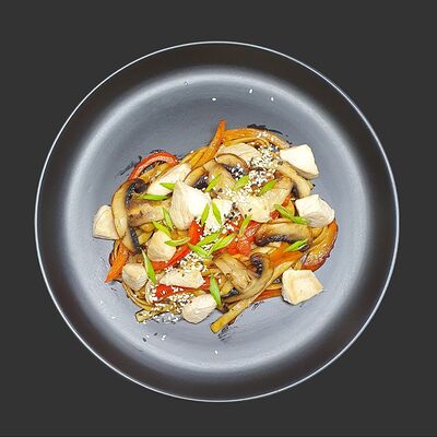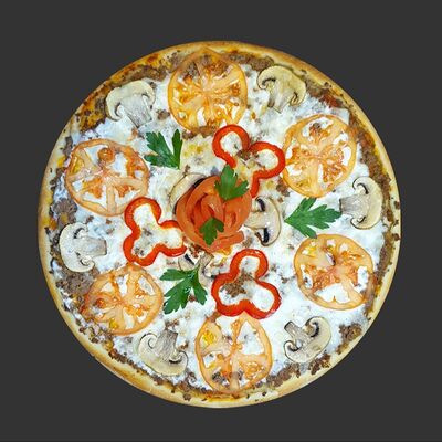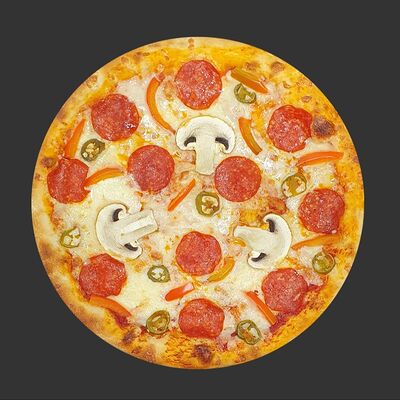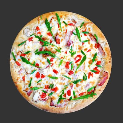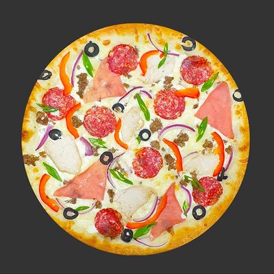 Цыпленок, ветчина, перец болгарский, грибы, соус унаги, моцарелла (30 см)