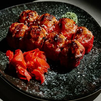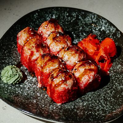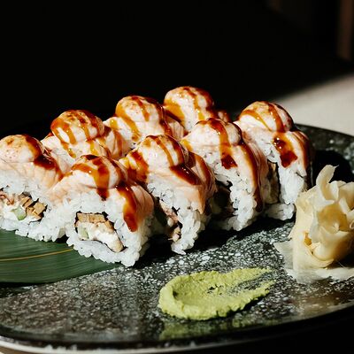 Ролл опалённый с угрем и лососем доставка