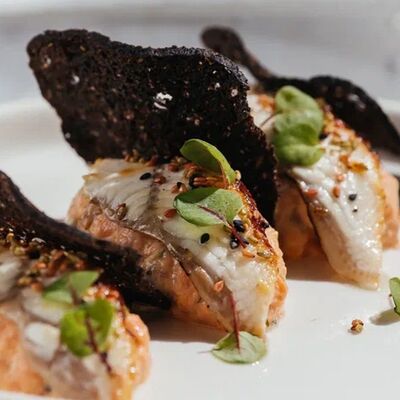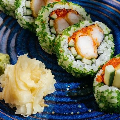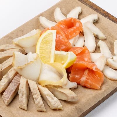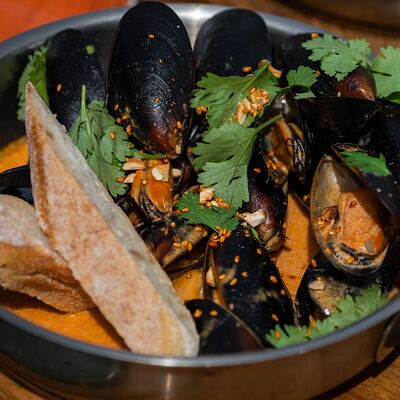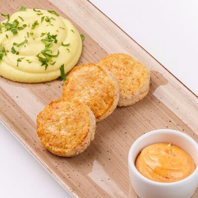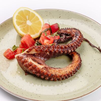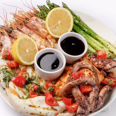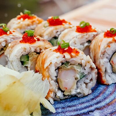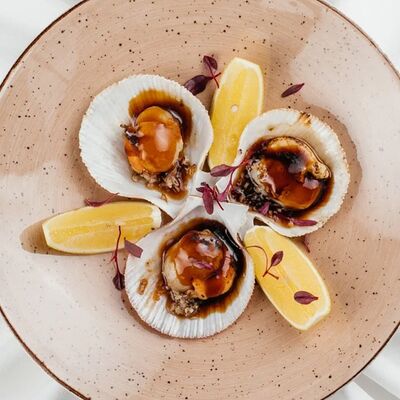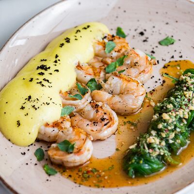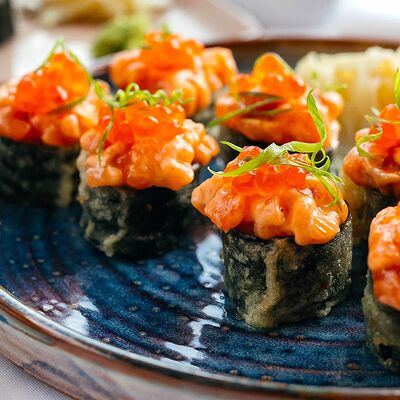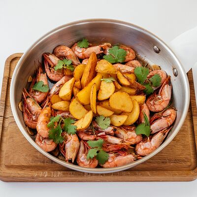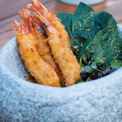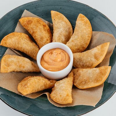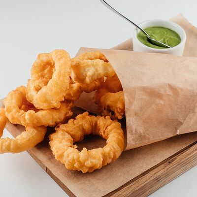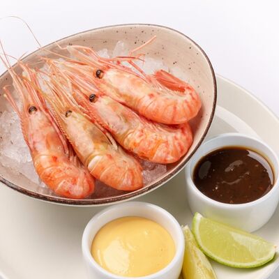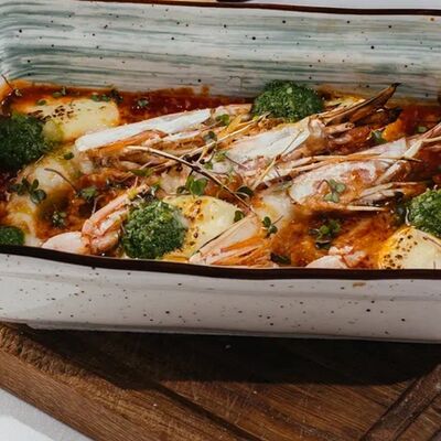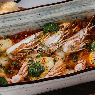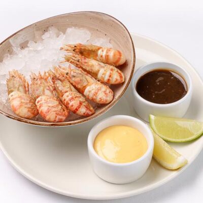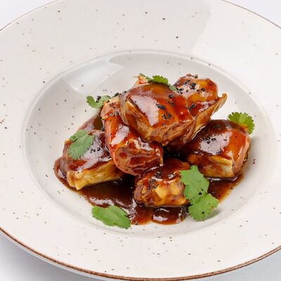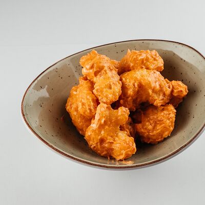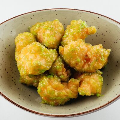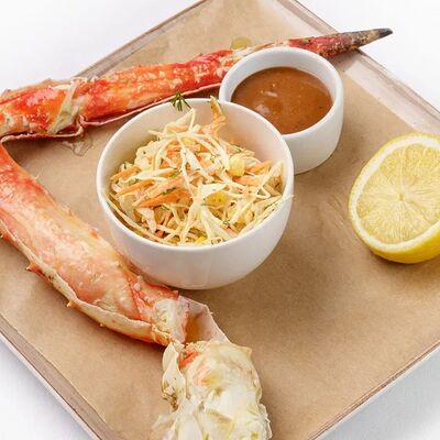 Фаланги под соусом спайси, запекаются под саламандрой, подаются с лимоном
