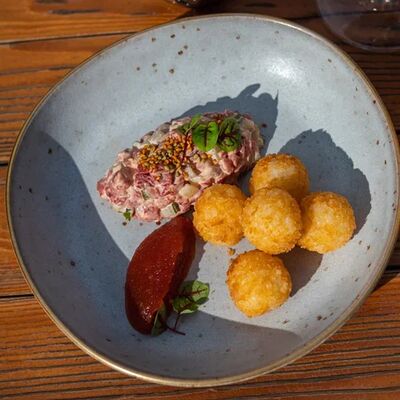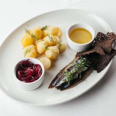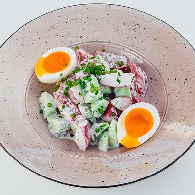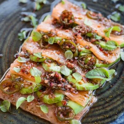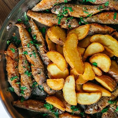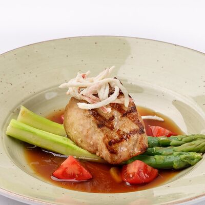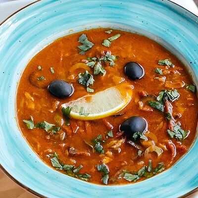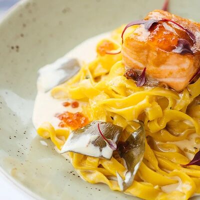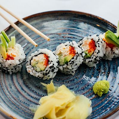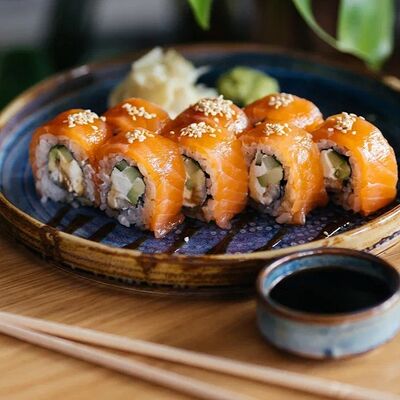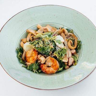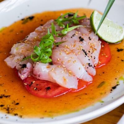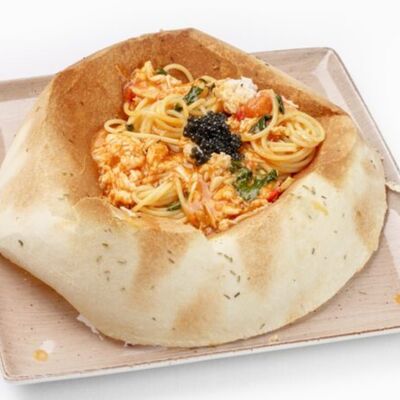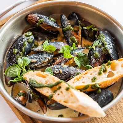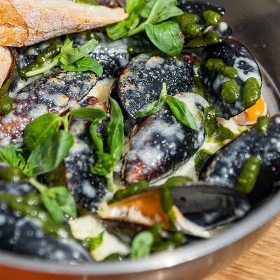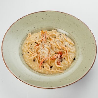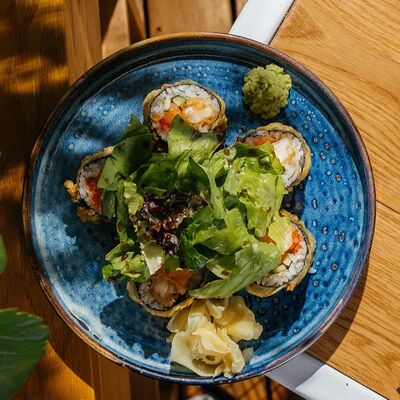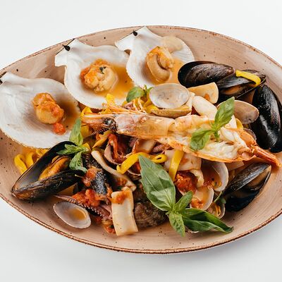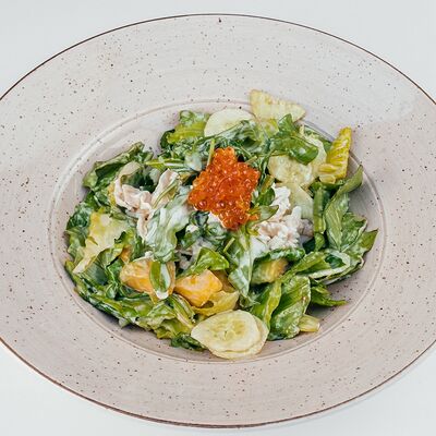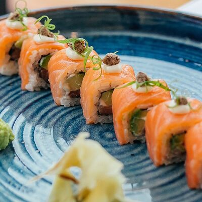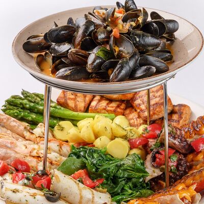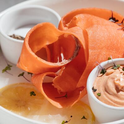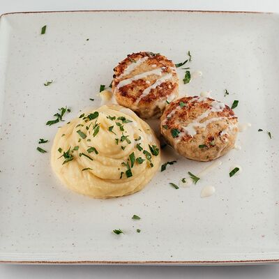 Фаланги под соусом спайси, запекаются под саламандрой, подаются с лимоном