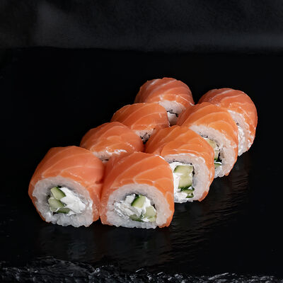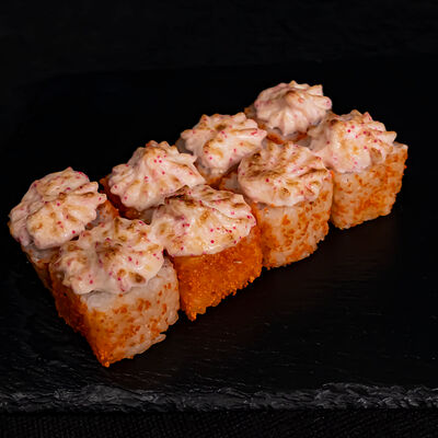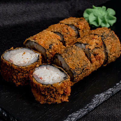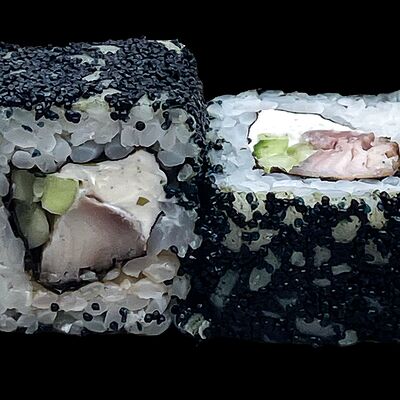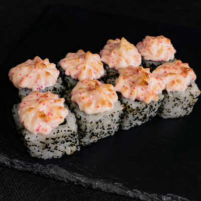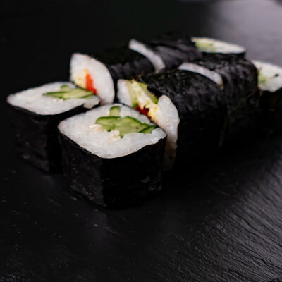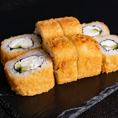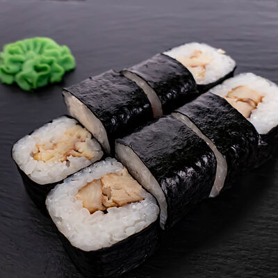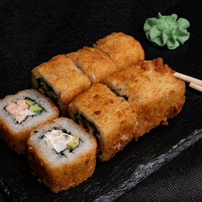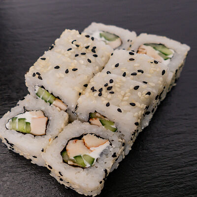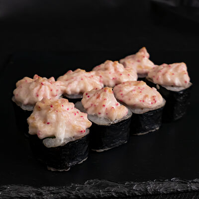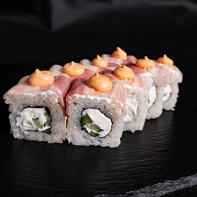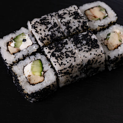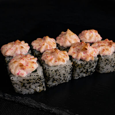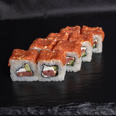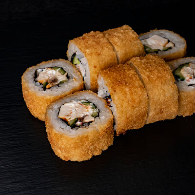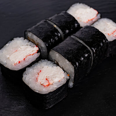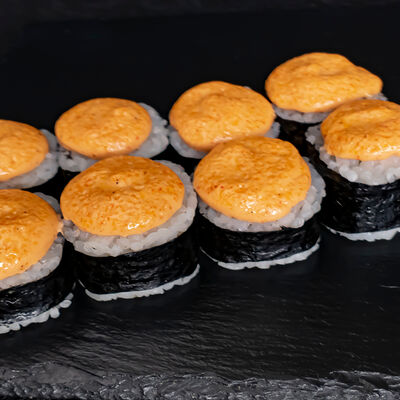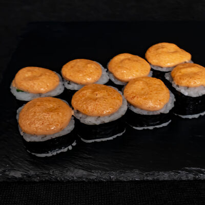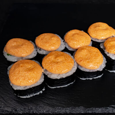 Нори, рис, сливочный сыр, огурец, курица, спайси соус