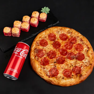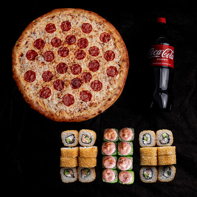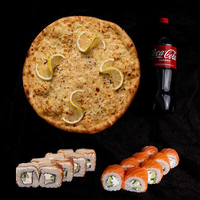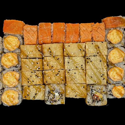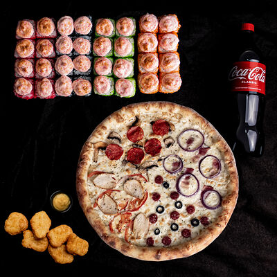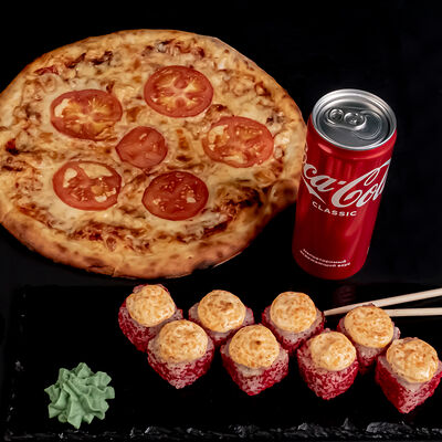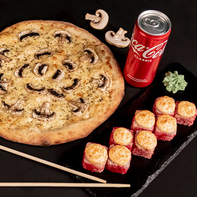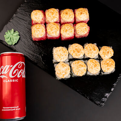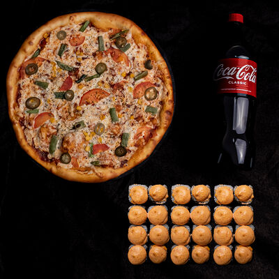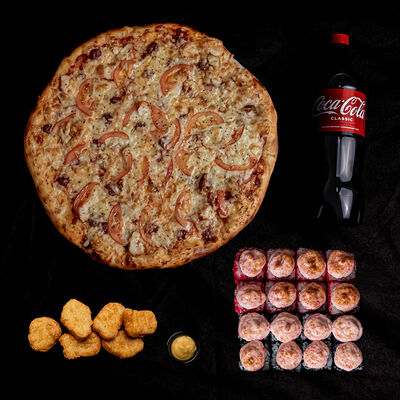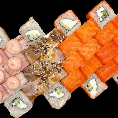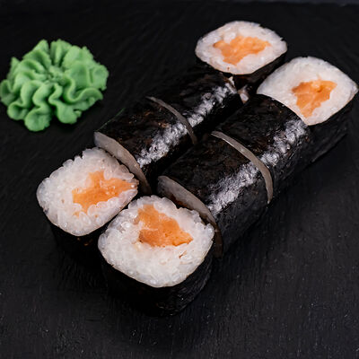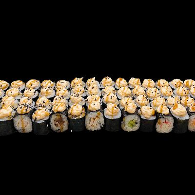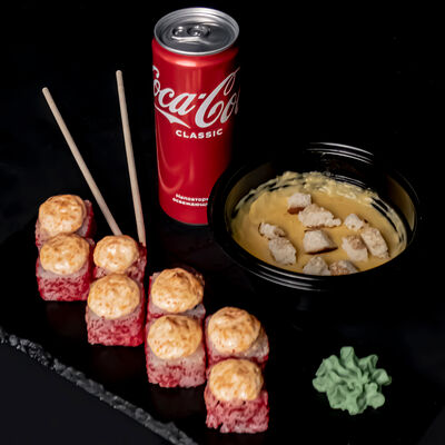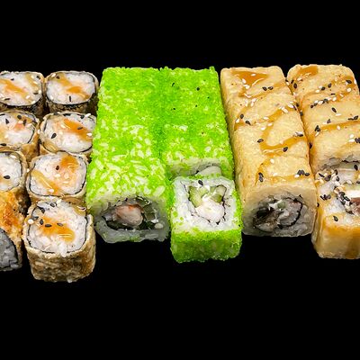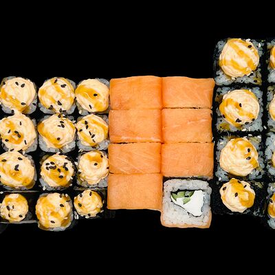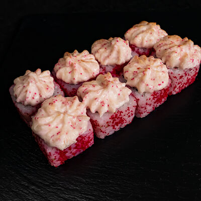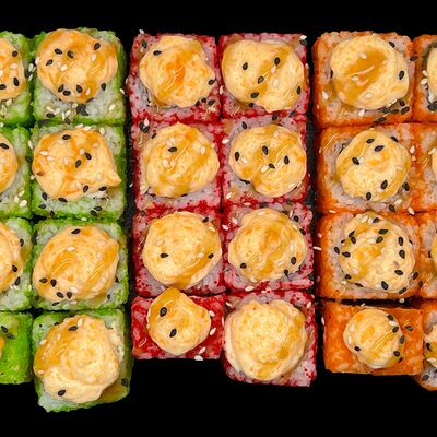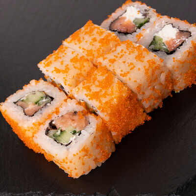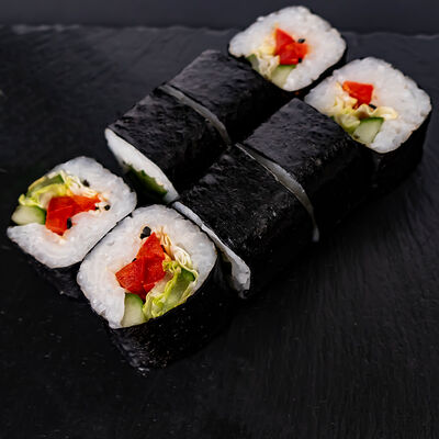Нори, рис, сливочный сыр, огурец, курица, спайси соус