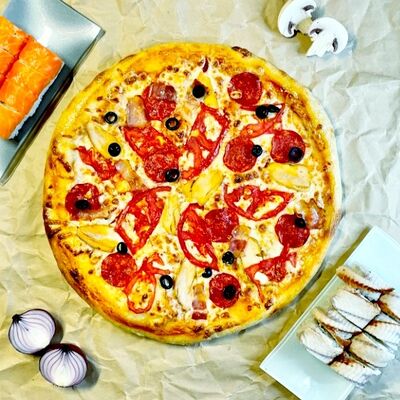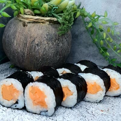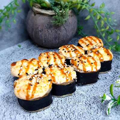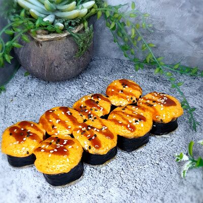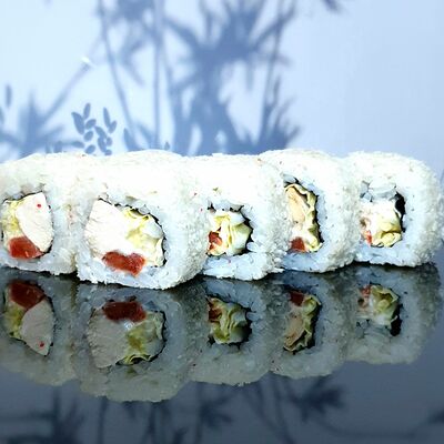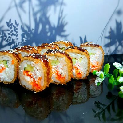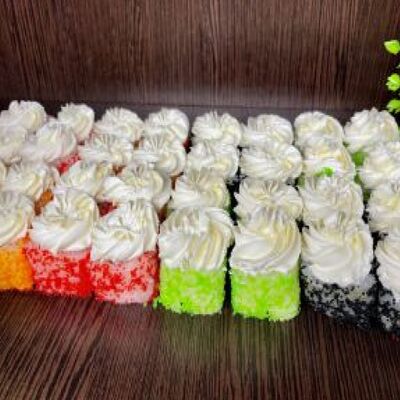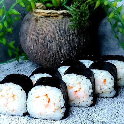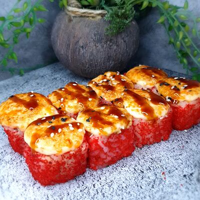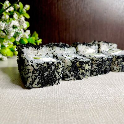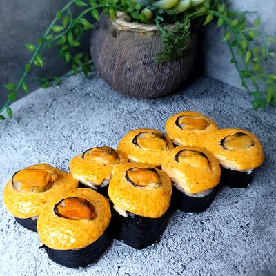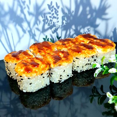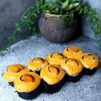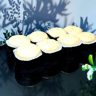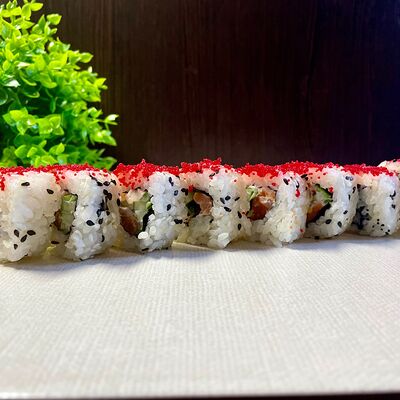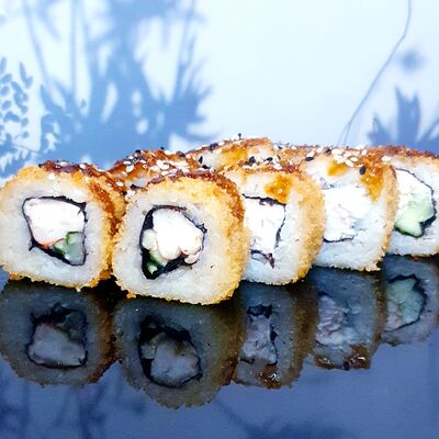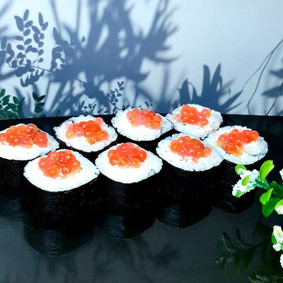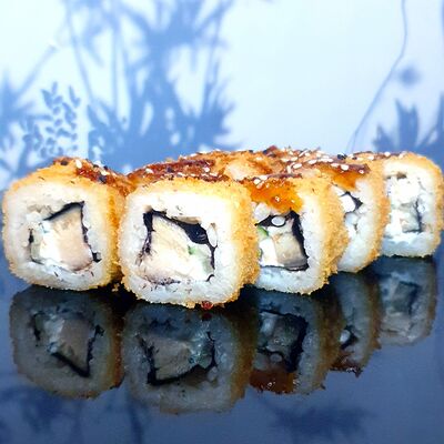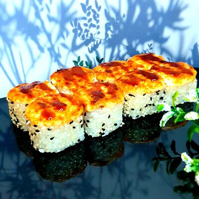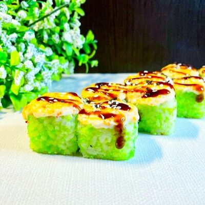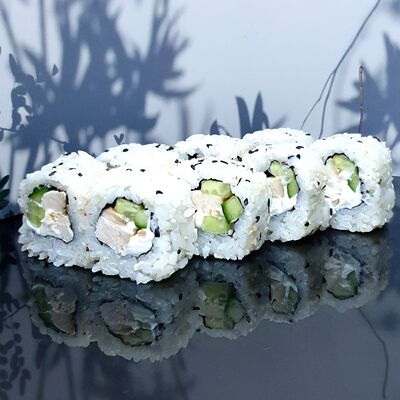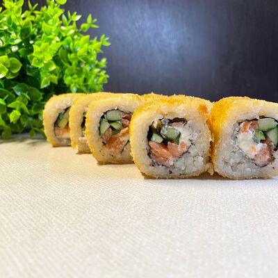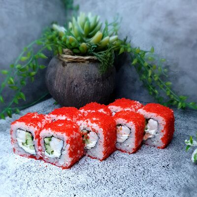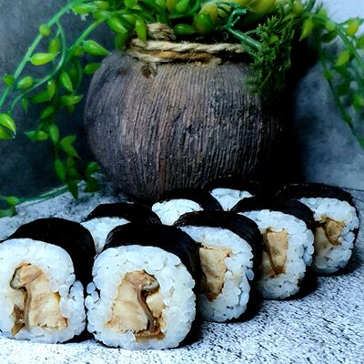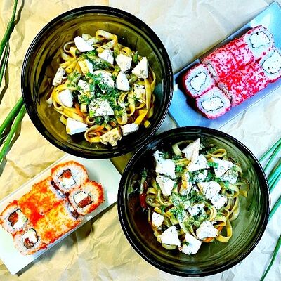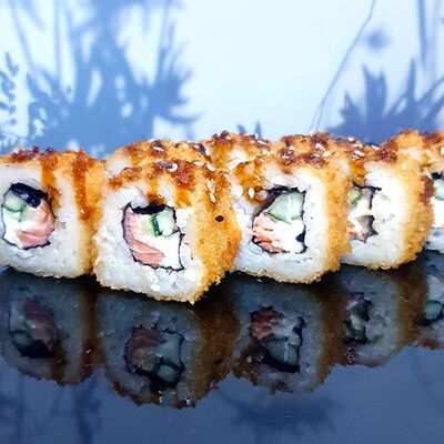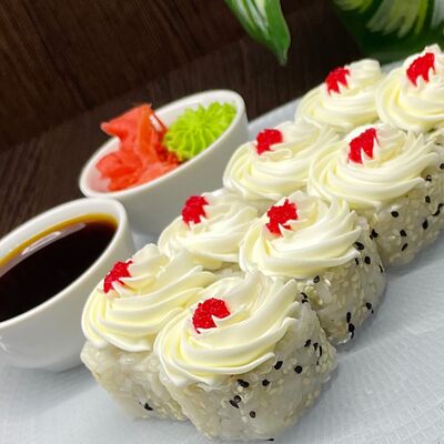 Филадельфия с угрем (угорь, нори, рис, сливочный сыр, огурец), Филадельфия с лососем (лосось, рис, нори, сливочный сыр, огурец), Аляска (лосось, угорь, рис), мини-ролл с лососем