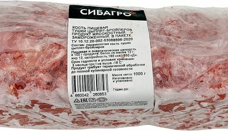 Кость тушки цыпленка Сибагро замороженная 1кг доставка