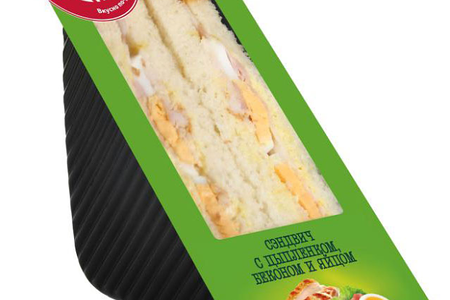 Сытный сэндвич АШАН Красная Птица с начинкой из нежного филе цыпленка и сочного бекона. Необычный вкус ему придает фирменный соус с ярким вкусом карри, а вареное яйцо в составе делает его идеальным для сытного завтрака. Аппетитный вариант для перекуса на работе или в поездке.Состав: Хлеб тостовый (мука пшеничная хлебопекарная высший сорт, вода питьевая, крахмал кукурузный высший сорт, сахар, рафинированные дезодорированные растительные масла в натуральном и модифицированном виде, в том числе соевое, цельное сухое молоко, мука из пшеничных зародышей, дрожжи, соль пищевая, сахар виноградный, энзимы, консервант Е202, ароматизатор, краситель Е160а, антиокислители (Е330, Е300, Е307), эмульгаторы (Е435, Е475, Е471), загуститель Е412, ферменты (пшеница)), филе грудки цыпленка копчено-вареное (грудка куриная, вода питьевая, нитритно-посолочная смесь (соль пищевая, фиксатор окраски Е250), клетчатка (бамбуковая, подорожника), белок соевый, регуляторы кислотности (Е331iii, Е262i, Е330, Е451i, Е500), загустители (Е407а, Е415), пряности и экстракты пряностей, ароматизатор, усилитель вкуса и аромата Е621, сахар (декстроза), антиокислитель Е301), майонез (масло подсолнечное рафинированное дезодорированное, вода питьевая, сахар, желток яичный, соль пищевая, регулятор кислотности Е260, загустители (Е412, Е415), консерванты (Е211, Е201), ароматизаторы, краситель каротины), яйцо куриное вареное, бекон копчено-вареный (свинина (грудинка), вода питьевая, нитритно-посолочная смесь (соль пищевая, фиксатор окраски Е250), регуляторы кислотности (Е451i, Е262i, Е331iii), стабилизаторы (Е450i, Е450iii, Е450v, Е452i), сахар (декстроза), ароматизатор, антиокислители (Е301, Е223)), специя соус карри (куркума, паприка, томаты, кориандр, чеснок, орех мускатный, кумин, пажитник, лавровый лист, тмин, имбирь, корица, кардамон, гвоздика, горчица, перец черный, перец душистый).
