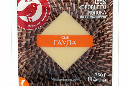 Сыр твердый АШАН Красная птица Гауда 45% нарезка доставка