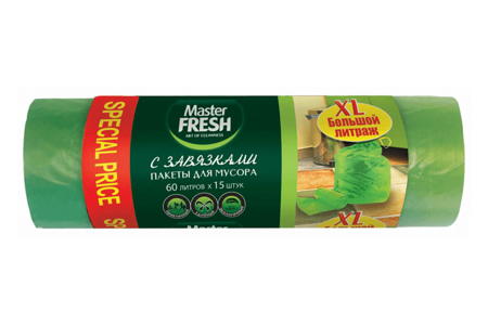 Пакеты для мусора Мастер Фреш XXL с завязками 60л 15шт доставка