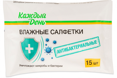 Влажные салфетки Каждый день антибактериальные, 15 шт доставка