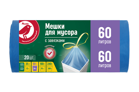 Мешки для мусора Ашан Красная Птица с завязками 60 л, 20 шт доставка