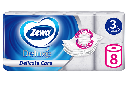 Бумага туалетная ZEWA Deluxe 3-слоя белая, 8 рулонов доставка