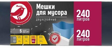 Мешки для мусора Ашан Красная птица двухслойные 240 л, 5 шт доставка