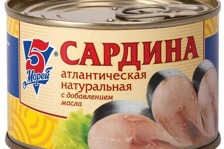 Сардина атлантическая натуральная 5 Морей с добавлением масла доставка