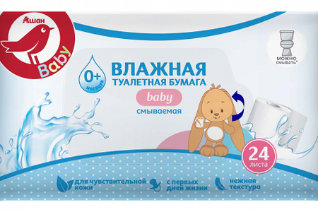Влажная туалетная бумага АШАН Красная птица, 24 шт доставка