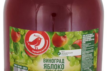Сок яблочно-виноградный АШАН Красная Птица, 3 л доставка