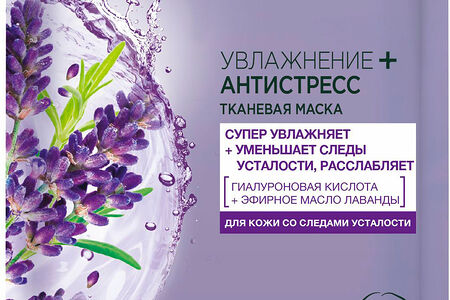 Garnier Тканевая маска для лица «Увлажнение + Антистресс» с гиалуроновой кислотой и маслом лаванды против следов усталости для увлажнения, питания и восстановления сияния кожи доставка