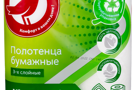 Бумажные полотенца АШАН Красная птица 3 слоя, 2 рулона доставка
