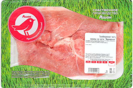 Тазобедренная часть АШАН Красная птица свиная на кости охлажденная (0,8-1,2 кг), 1 упаковка доставка