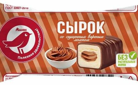Сырок творожный АШАН Красная птица глазированный со сгущенкой БЗМЖ, 40 г доставка