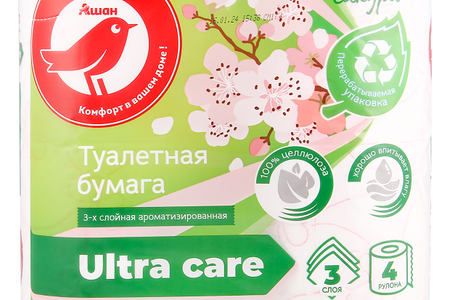 Туалетная бумага АШАН Красная птица Сакура 3 слоя, 4 рулона доставка