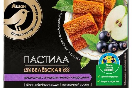 Пастила АШАН Золотая птица Белевская воздушная с ягодками черной смородины, 100 г доставка