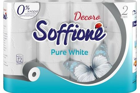Туалетная бумага Pure White (Пьюр Уайт) 2 слоя, 12 рулонов ТМ Soffione (Софионе) доставка