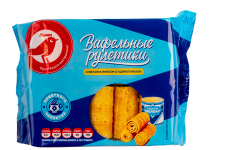 Рулетики АШАН Красная птица вафельные с ароматом сгущенного молока доставка