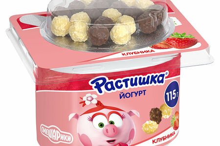 Йогурт Растишка густой обогащенный клубника с драже 3% доставка