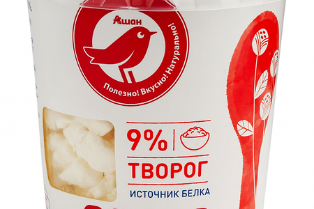 Творог АШАН Красная птица 9% доставка