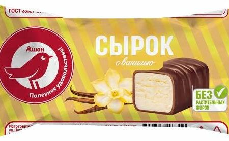Сырок творожный АШАН Красная птица глазированный с ванилью БЗМЖ, 40 г доставка