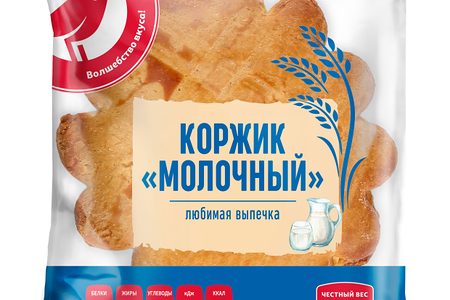 Молочный коржик АШАН Красная птица подходит абсолютно всем, независимо от возраста и предпочтений в еде. Он идеально сочетается с чашкой чая или кофе.Состав: Мука пшеничная хлебопекарная высшего сорта, сахар белый, вода питьевая, маргарин для песочного теста (масла растительные рафинированные дезодорированные, в том числе переэтерифицированные: подсолнечное, пальмовое и его фракции, кокосовое, вода питьевая, эмульгаторы: моно- и диглицериды жирных кислот, полиоксиэтилен сорбитан моноолеат, антиокислители: аскорбилпальмитат, концентрат смеси токоферолов, консервант сорбат калия, регулятор кислотности лимонная кислота, ароматизатор, красители: куркумин, аннато), молоко сухое цельное, меланж яичный сухой, разрыхлители: гидрокарбонат натрия, карбонат аммония, ароматизатор Ванилин (сахар, натуральные вкусоароматические вещества, вкусоароматические вещества, антикомкователь Е551).