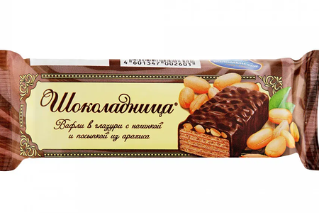 Вафли глазированные Шоколадница с начинкой и посыпкой из арахиса доставка