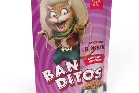 Влажный корм для взрослых кошек BANDITOS с ягненком кусочки в желе, 75 г доставка