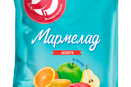 Мармелад Ассорти АШАН Красная птица - идеальное сочетание сладости, мягкости и нежности. Каждый кусочек мармелада просто тает во рту, оставляя неповторимый послевкусие и даря настоящее удовольствие. Создавая наши продукты, мы также уделяем особое внимание соблюдению норм и стандартов качества, чтобы уверенно предложить вам только лучшее. Выбирайте свой идеальный вариант для завтрака, перекуса или вечернего удовольствия у нас есть мармелад, чтобы удовлетворить любые ваши кулинарные желания.Состав: Сахар-песок, патока крахмальная, желирующий агент - пектин, сухая смесь на основе соков и пюре Мультифрукт (мальтодекстрин(кукурузный), концентрированное абрикосовое пюре, концентрированный сок лайма, концентрированной клубничное пюре, концентрированный сок кислой вишни), регуляторы кислотности - кислота лимонная, цитрат натрия, красители натуральные, растительный лютеин, медный хлорофиллин, концентрат сока бузины, смесь каротинов, ароматизатор натуральный Яблоко , идентичный натуральному: Груша , Малина , Апельсин .