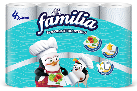 Полотенца бумажные Familia 2 слоя, 4 рулона доставка