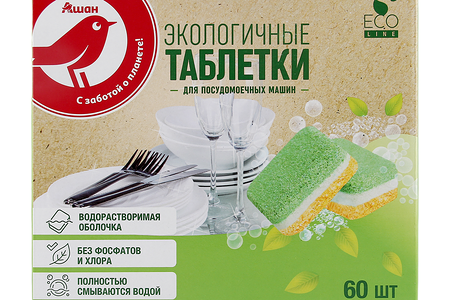 Таблетки для посудомоечных машин АШАН Красная птица без фосфатов и хлора, 60 шт доставка