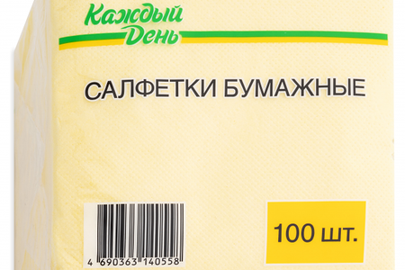 Салфетки бумажные Каждый день однослойные желтые, 100 шт доставка
