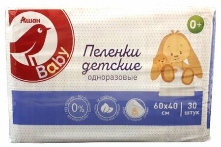 Пеленки одноразовые для детей АШАН Красная птица 60х40 см, 30 шт доставка