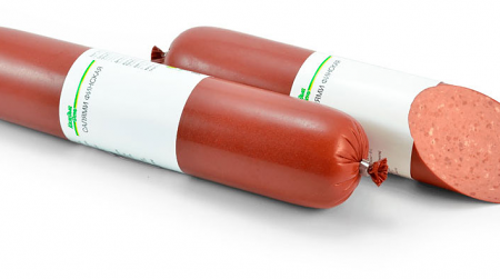 Состав: Мясо птицы механической обвалки, шпик, белковый стабилизатор (шкурка свиная, вода питьевая), свинина, вода питьевая, крахмал картофельный, соевый белок, мука рисовая, животный белок, молоко сухое обезжиренное, посолочно-нитритная смесь (соль, фиксатор окраски Е250), комплексная пищевая добавка (стабилизатор (E450iii), соль, усилитель вкуса и аромата (E621), антиокислитель (E300), декстроза, пряности (перец черный) и экстракты пряностей (кориандр, чеснок), комплексная пищевая добавка (регуляторы кислотности (Е262), (Е326), наполнитель (Е325), антиокислитель (Е330)), чеснок, стабилизатор (Е401), загуститель (Е407a), краситель (Е120).