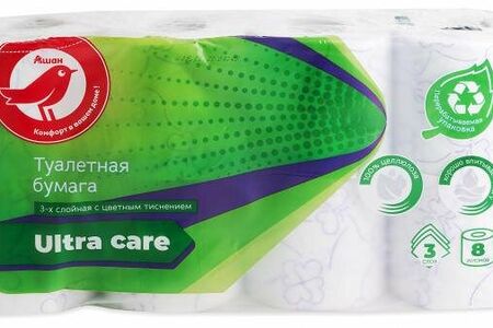Туалетная бумага АШАН Красная птица цветная с тиснением, 3 слоя, 8 рулонов доставка