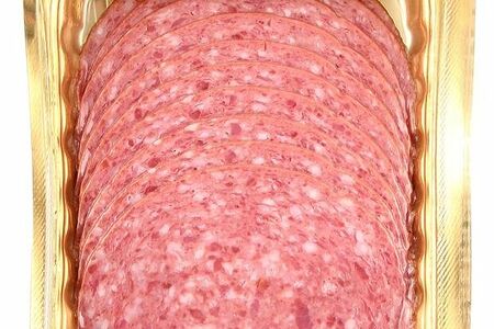 Колбаса варено-копченая Ашан Красная птица Сервелат Финский в нарезке доставка