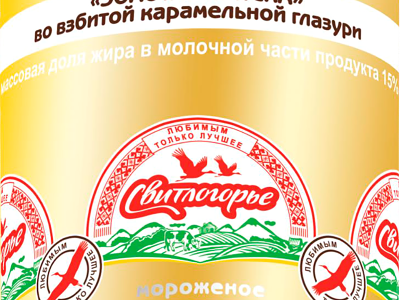 Мороженое СВИТЛОГОРЬЕ Золотая ириска, пломбир ванильный и пломбир с наполнителем во взбитой карамельной глазури 15%, без змж, трубочка доставка