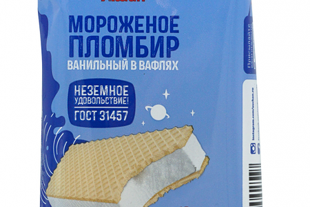 Мороженое пломбир АШАН Красная птица ванильный на вафлях доставка