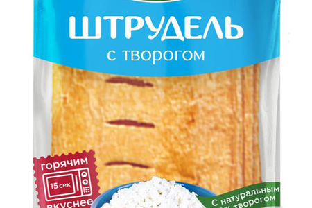 Многослойное тесто, вкусная начинка - это уникальный штрудель! Слоеное тесто и творогделают изделие нежным и необыкновенно вкусным. А сахарная посыпка отлично дополняет полносту вкуса.Состав: Мука пшеничная хлебопекарная высшего сорта, маргарин (растительные масла, в том числе модифицированные, в том числе соевое; вода, эмульгаторы: моно- и диглицериды жирных кислот, эфиры полиглицерина и жирных кислот, лецитины соевые; соль, сахар, консервант сорбат калия, краситель каротины, регулятор кислотности лимонная кислота, ароматизатор, антиокислители: аскорбиновая кислота, альфа-Токоферол), вода, продукт растительно-творожный (молоко восстановленное (молоко сухое обезжиренное, вода), заменитель молочного жира (рафинированные дезодорированные растительные масла в натуральном и модифицированном виде: пальмовое и его фракции, подсолнечное, соевое, рапсовое; эмульгатор моно- и диглицериды жирных кислот, антиокислитель Е306), комплексная пищевая добавка (загуститель Е1422, молочный белок, регулятор кислотности цитраты натрия, клетчатка пшеничная, консервант сорбат калия), закваска, молокосвертывающий фермент микробного происхождения), сахар, продукты яичные, маргарин (растительные масла, в том числе модифицированные, вода, эмульгаторы: моно- и диглицериды жирных кислот, эфиры полиглицерина и жирных кислот; соль, ароматизатор, краситель каротины, регулятор кислотности лимонная кислота), загустители: Е1414, Е1422, творог (молоко сухое обезжиренное, масло сливочное, вода, закваска, молокосвертывающий фермент микробного происхождения), дрожжи хлебопекарные прессованные, соль (содержит антислеживающий агент Е536), консерванты: сорбат калия, пропионат кальция.