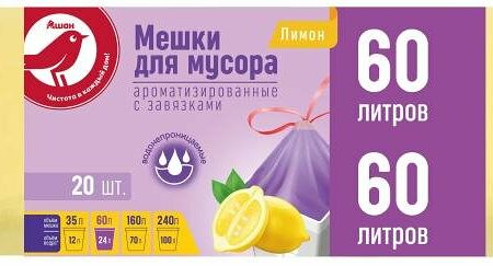 Мешки для мусора Ашан Красная птица ароматизированные с затяжками 60 л, 20 шт доставка