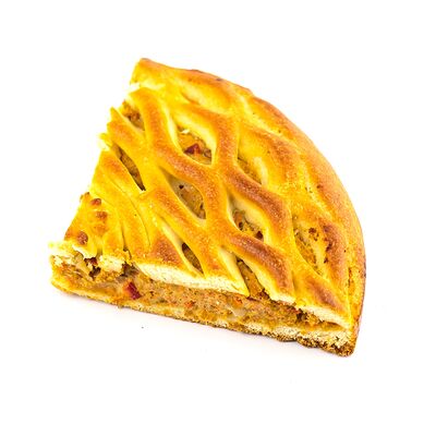 Пирог из воздушного сдобного дрожжевого теста, с начинкой из брусники и свежих яблок. Обладает легкой кислинкой