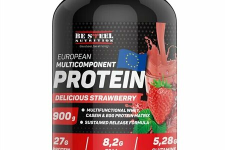 Протеин многокомпонентный Be Steel Nutrition European Multi Component Protein вкусная клубника 900 г доставка