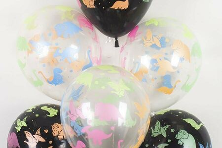 Воздушные шары с гелием Яркие Динозаврики 15шт доставка