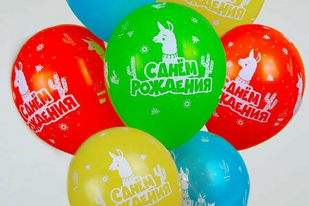 Воздушные шары с гелием Лама С Днем Рождения Разноцветные 9шт доставка